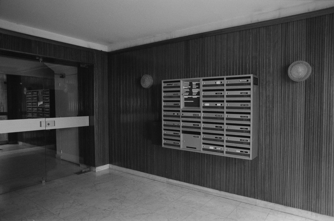 Cette série de halls d’immeuble, un travail entrepris depuis 2007, s’apparente à une collection